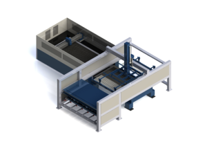 Geralmente, estes modelos incluem um robot específico para carregamento de chapas com ventosas, um dispositivo de pré‑posicionamento, um carro de produto acabado, e podem incluir sistemas de segurança como cortinas de luz. O produto está desenhado para funcionar de forma contínua com maquinas de corte a laser padrão da indústria.