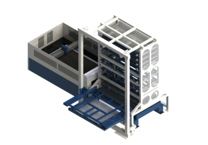 A Unidade de Automação Laser (modelo relacionado a pros_62) é um sistema automatizado desenvolvido para integrar um robot de carga/descarga com uma máquina de corte a laser. O sistema inclui robot com ventosas ou garfos, dispositivos de pré‑posicionamento de chapa, plataformas de troca e segurança, permitindo alimentação de chapa, corte por laser e remoção automática do material acabado e dos refugos, tudo em ciclo contínuo e coordenado. Este design elimina grande parte da intervenção manual, aumenta a produtividade e melhora a segurança no ambiente fabril.