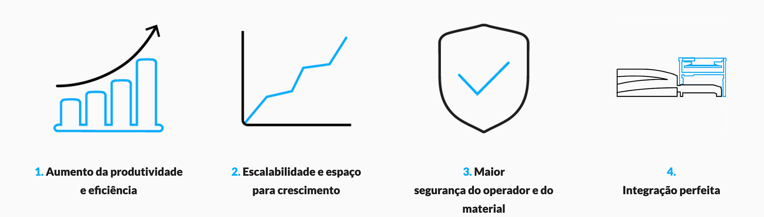 Os sistemas de automação de corte a laser reduzem o tempo de inatividade, aumentam a produtividade e otimizam o desempenho da sua máquina, proporcionando um ambiente mais seguro para os operadores. A Eagle Automation oferece soluções inteligentes que se adaptam às suas necessidades de produção — seja para aumentar a escala, cortar custos, atingir produtividade 24 horas por dia, 7 dias por semana, ou todos os três.